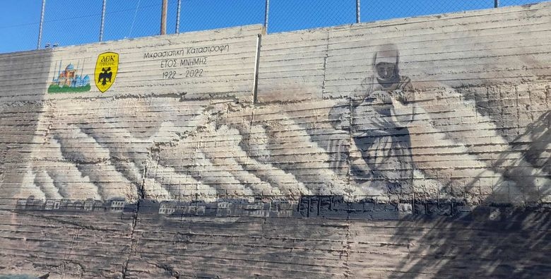 Τα αποκαλυπτήρια ενός γκράφιτι αφιερωμένου στην επέτειο των 100 χρόνων από τη Μικρασιατική Καταστροφή έγιναν σήμερα στον τοίχο του γηπέδου Φιλικών, έδρας της ΑΕΚ Τρίπολης. Τελέστηκε τρισάγιο για τους ιδρυτές της ομάδας στην περιοχή αυτή, όπου εγκαταστάθηκαν οι πρώτοι πρόσφυγες, και εγκαινιάστηκαν τα μίνι μουσεία του συλλόγου, στα οποία δεσπόζουν τα εκθέματα που αφορούν την επίσκεψη της ΑΕΚ για φιλικό αγώνα με την ΑΕΚ Τρίπολης το 1960.