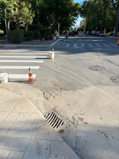 Προχθές, καθ’ οδόν προς τον κήπο του Πνευματικού Κέντρου Τρίπολης συναντήσαμε συνεργείο που πραγματοποιούσε εργασίες συντήρησης των διαγραμμίσεων στις διαβάσεις και χαρήκαμε γι’ αυτό. Προφανώς, τέτοιες ενέργειες έγιναν σε πολλά κεντρικά σημεία της πόλης.