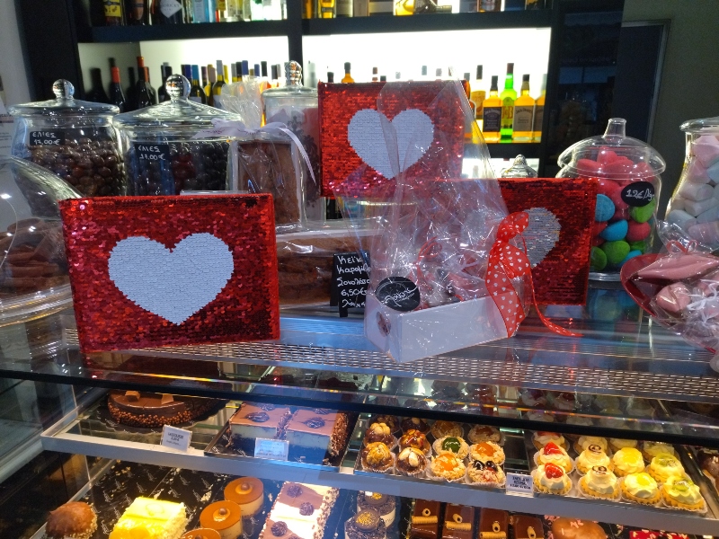 Κοσμοσυρροή και στο Ζαχαροπλαστείο «λάκης», το οποίο ήταν ευφάνταστα διακοσμημένο για την ημέρα του Αγίου Βαλεντίνου, με τις γλυκές δημιουργίες να κατακλύζουν τις βιτρίνες του.
