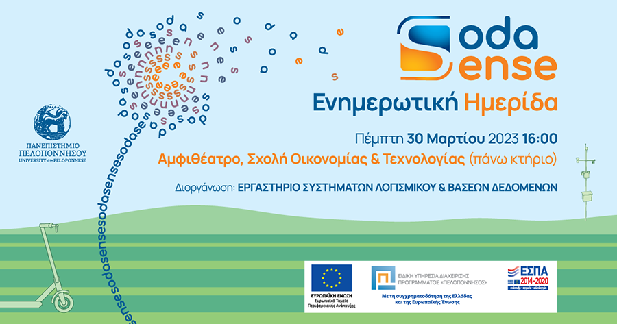 Την ευκαιρία να ενημερωθούν για το ερευνητικό έργο SodaSense, το οποίο υλοποιείται από έμπειρη ερευνητική ομάδα του Τμήματος Πληροφορικής και Τηλεπικοινωνιών του Πανεπιστημίου Πελοποννήσου, σε συγχρηματοδότηση της ΕΕ και της Περιφέρειας Πελοποννήσου θα έχουν οι πολίτες της Τρίπολης και ιδιαίτερα οι επαγγελματίες όπως γεωπόνοι και καλλιεργητές την Πέμπτη 30 Μαρτίου 2023, στις 16:00 στο Αμφιθέατρο της Σχολής Οικονομίας και Τεχνολογίας στην Τρίπολη.
