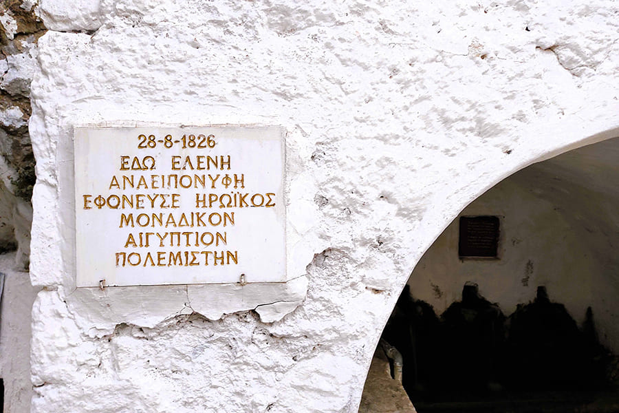 Η μάχη του Πολυαράβου, τον Αύγουστο του 1826, αποτελεί κορυφαία στιγμή της μανιάτικης αντίστασης και της εθνικής αξιοπρέπειας. Η μάχη χαρακτηρίστηκε από σφοδρές συγκρούσεις, πυρπολήσεις, ηρωικές πράξεις και συλλογική αυτοθυσία. Χαρακτηριστική είναι η πράξη ηρωισμού της σχεδόν μυθικής Ελένης Αναϊπόνυμφης, που εξελίχθηκε κοντά στην πετρόχτιστη κρήνη του Πολυαράβου και σε ελάχιστη απόσταση από την μνημειακή βελανιδιά. Η ηρωίδα Ελένη καθώς ανέβαινε προς τον Πολυάραβο, κρατώντας στην αγκαλιά της τα δύο ανήλικα τέκνα της, δέχθηκε επίθεση από έναν άραβα στρατιώτη. Με απαράμιλλη τόλμη τον αφόπλισε και τον εξόντωσε καρφώνοντας την ξιφολόγχη του στο στήθος, ενώ ακολούθως του αφαίρεσε τον οπλισμό και συνέχισε τον δρόμο της. Για το απαράμιλλο θάρρος της, η Πολιτεία καθιέρωσε την απεικόνιση της ηρωικής σκηνής ως σύμβολο στη σφραγίδα του πάλαι ποτέ Δήμου Μαλευρίου.