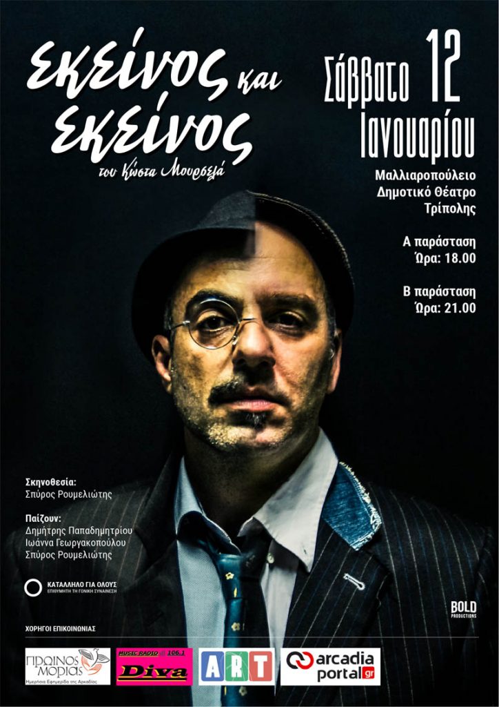 H Bold Productions μετά τις επιτυχημένες παραστάσεις στην Καλαμάτα και την Κυπαρισσία παρουσιάζει την θεατρική παραγωγή «Εκείνος & Εκείνος» του Κώστα Μουρσελά σε σκηνοθεσία Σπύρου Ρουμελιώτη και στην Τρίπολη. Πρόκειται για τέσσερα θεατρικά μονόπρακτά από τη γνωστή, αγαπημένη τηλεοπτική σειρά που έγινε μεγάλη επιτυχία με τους αξέχαστους Βασίλη Διαμαντόπουλο και Γιώργο Μιχαλακόπουλο.