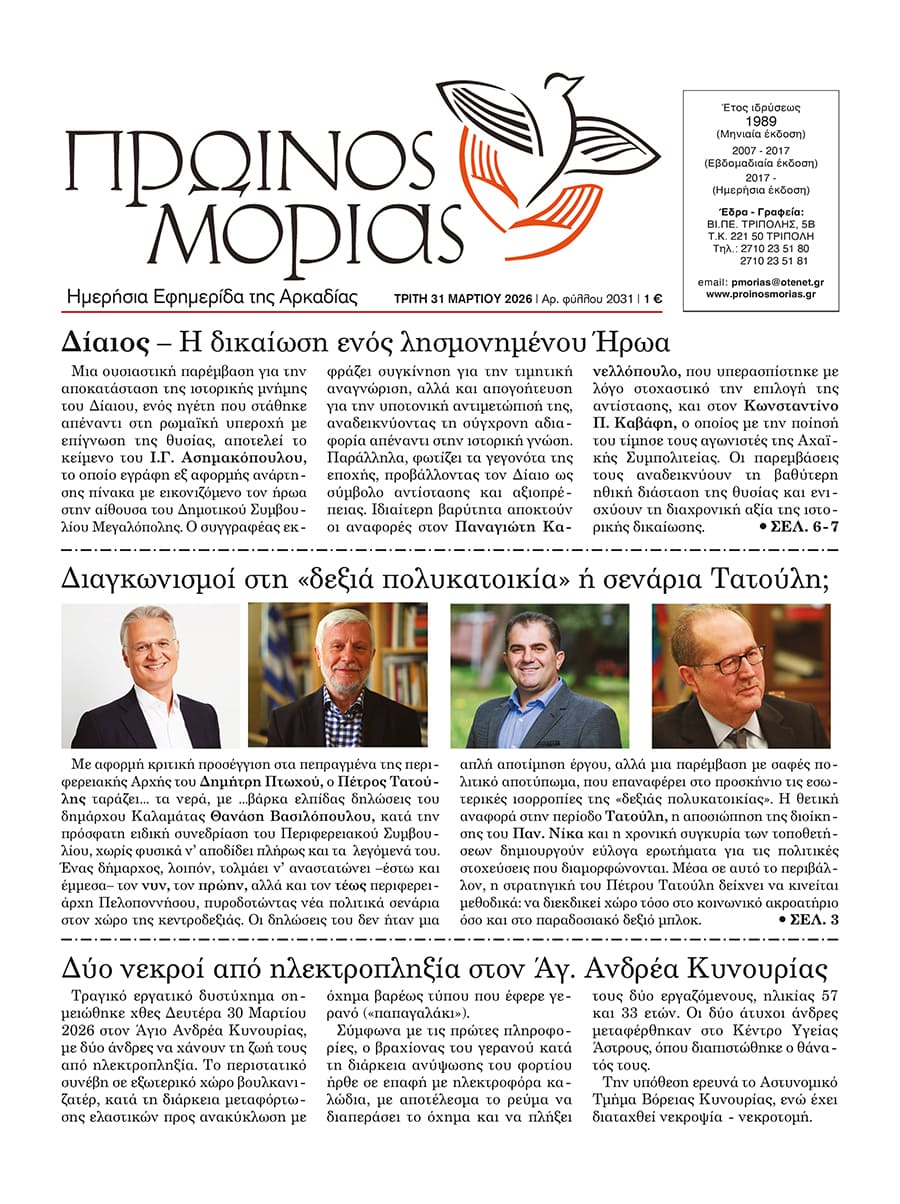 Την Παρασκευή 27 Μαρτίου του έτους 2026 σε μια σεμνή τελετή στο Νέο Δημαρχείο της Μεγαλόπολης...