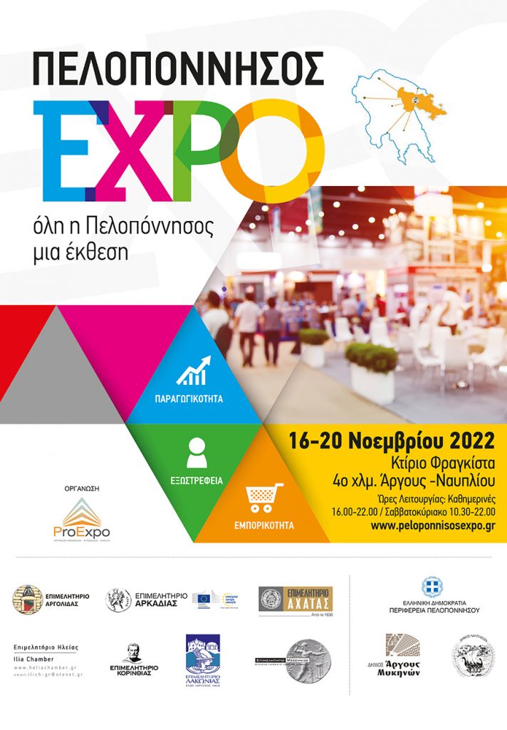 Η «Πελοπόννησος ΕΧΡΟ», η μεγαλύτερη περιφερειακή έκθεση της Πελοποννήσου, μετρά ήδη 6 χρόνια επιτυχημένης και αποτελεσματικής παρουσίας στον επιχειρηματικό κόσμο, μιας και έχει καθιερωθεί ως η σημαντικότερη έκθεση της Πελοποννήσου που προβάλλει την εξωστρέφεια, την καινοτομία και την επιχειρηματική ανάπτυξη των επιχειρήσεων.